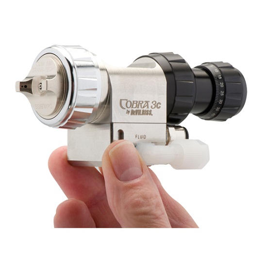 DeVilbiss Cobra 3c is an automatic low pressure air spray gun (constant air bleed) for the application of solvent and water based paints for use on automatic reciprocator, rotary and robotic painting machines.