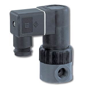 The GEMÜ 52 directly controlled 2/2-way solenoid valve has a completely plastic encapsulated coil. The valve body is available in various materials and with a straight through or angle valve body design. The armature is sealed by a bellows made of PTFE backed by an additional safety diaphragm.