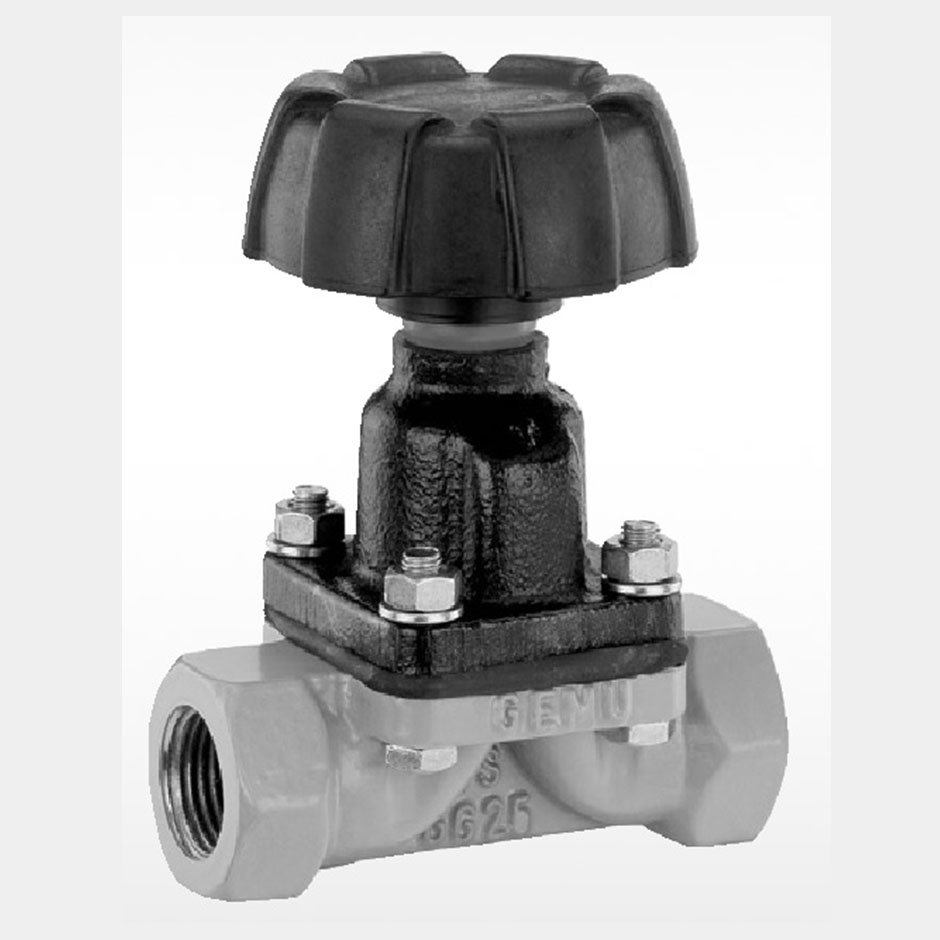 The GEMÜ 674 2/2-way manually operated metal diaphragm valve has a metal bonnet and a corrosion resistant plastic handwheel.