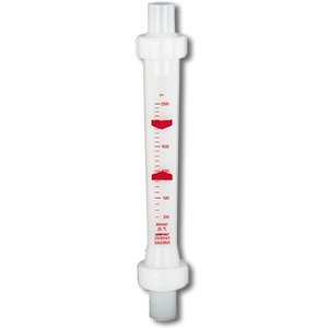The GEMÜ 800 HP flowmeter has a metering tube in PVDF suitable for inert or corrosive* media. Male threads moulded onto the ends of the metering tube allow for easy mounting of unions. O-ring seals at the faces of the tube ensure reliable sealing between metering tube and union and provide stress-free sealing. The floats are available in PVDF. The scale on the metering tube can be suited to the medium and is available e.g. in l/h, m³/h or %. Dovetail sections moulded onto the metering tube allow for easy mounting of adjustable visual flow indicators, limit switches and a continuous readout transmitter.