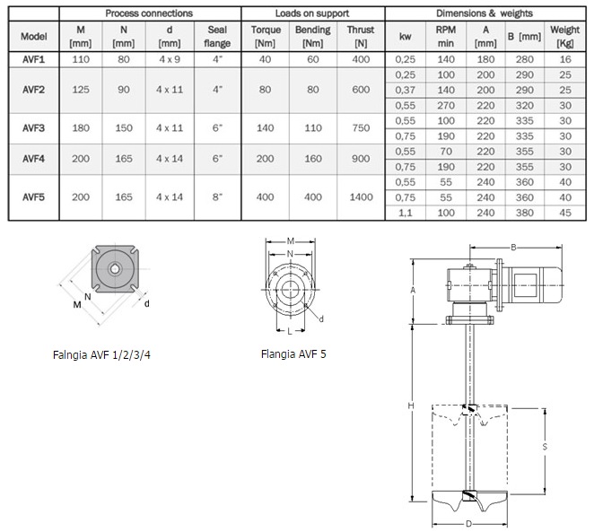 Inoltre, l’albero sporgente del riduttore è provvisto di giunto flangiato per il fissaggio all’albero dell’agitatore.