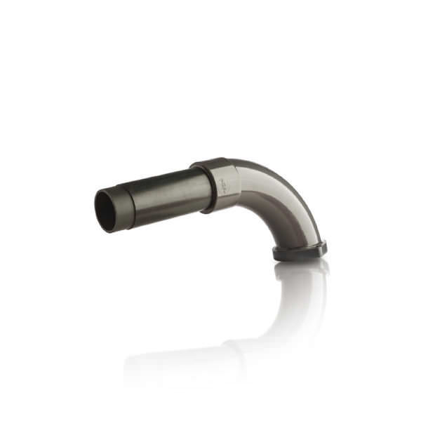 Il collettore FPZ è realizzato in PVC e presenta una conformazione a 90° con curva ad ampio raggio, estremità flangiata e terminale liscio.