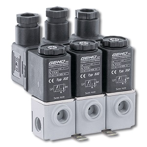 L’elettrovalvola pilota ad azionamento elettrico a 3/2 vie GEMÜ 332 è progettata per il montaggio in batteria.