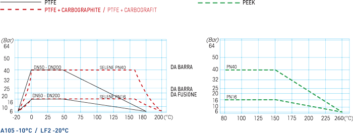 • PTFE+CARBOGRAFITE: + 200°C (condizione ottimale da 60°C a 200°C).