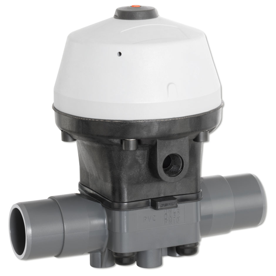 Valvola a membrana, attuatore in plastica, indicatore ottico di posizione, azionamento pneumatico
