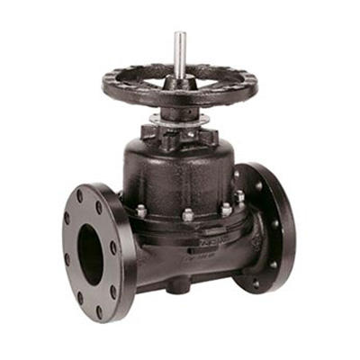 Valvola a membrana a passaggio totale, attuatore in metallo, azionamento manuale